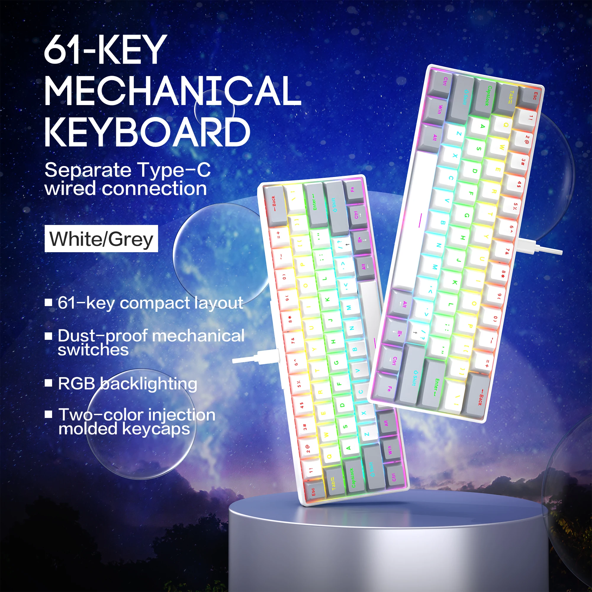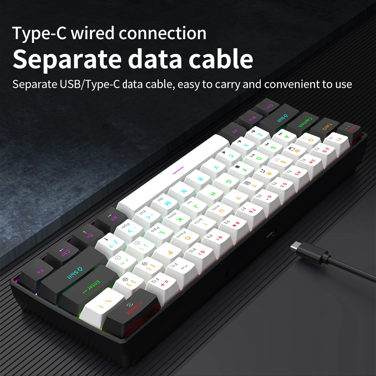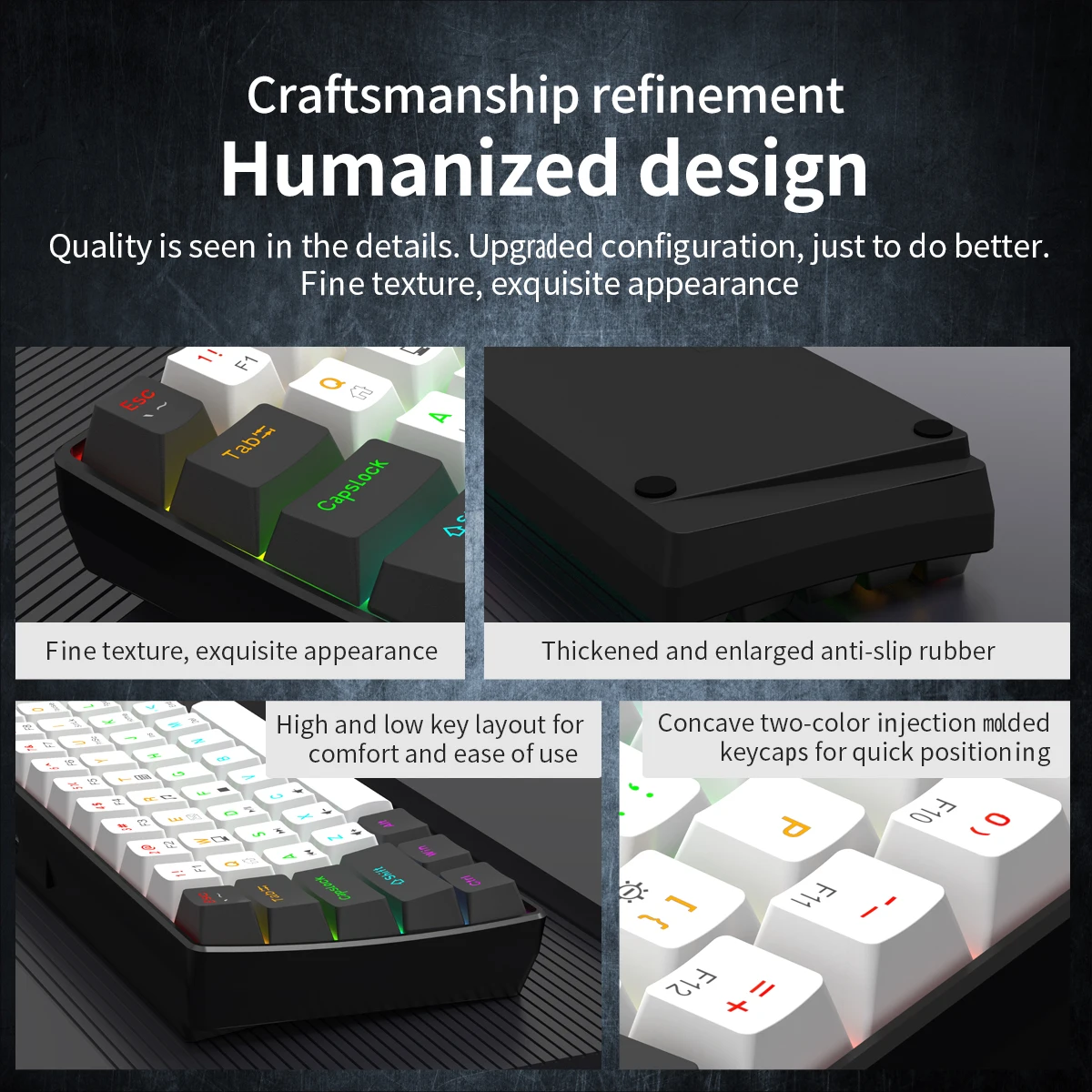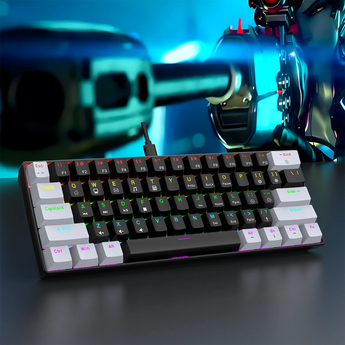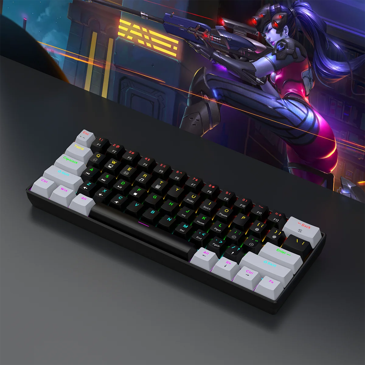 Experimente um design elegante e ultracompacto com um mini layout de 61 teclas, perfeito para jogadores e digitadores em movimento.